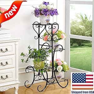 Metal Plant Stand Shelf Rack Indoor Outdoor Multiple Black 4 Tier Tall Corner Flower Pot Holder Stands Tiered Wrought Iron Planter Shelves for Patio Living Room Balcony Office Outside Inside 4.1 out of 5 stars 158